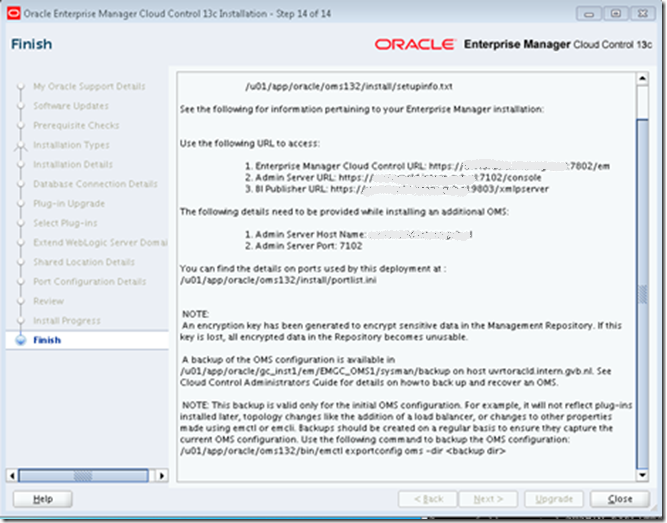 Finished execution of /u01/app/oracle/oms132/root.sh ……