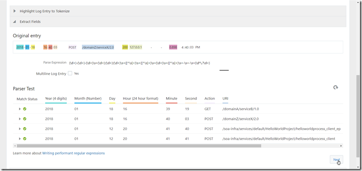 - Associate the WLS Access Log Files on the WLS Managed Servers with Extended Logging enabled with my Custom Log Parser, instead of the out of the box parser