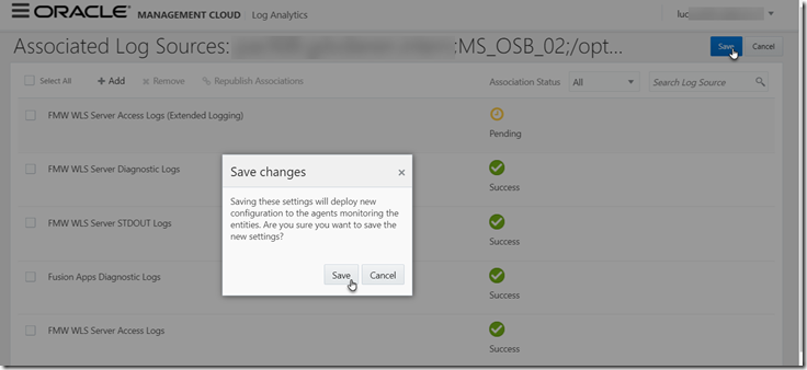Save the change and confirm that the log agents have to be reconfigured with this update: