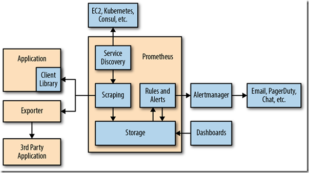 The architecture of Prometheus is very similar to the figure describing the outline of a monitoring solution: