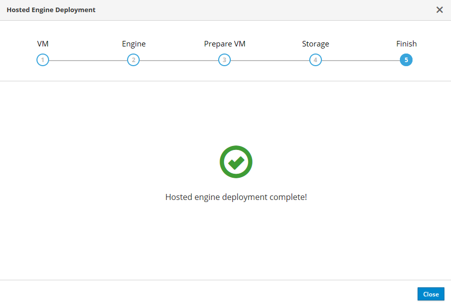 Obvious, but true: for high availability, you need at least two physical machines. On the second machine, install oVirt the same way as on the first physical machine. You don’t need to use the wizard, because the HostedEngine VM is already running.