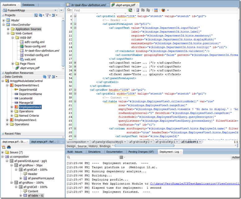 At this point, the JDBC Data Source is ready and proven ready. Time to deploy that ADF Web Application.