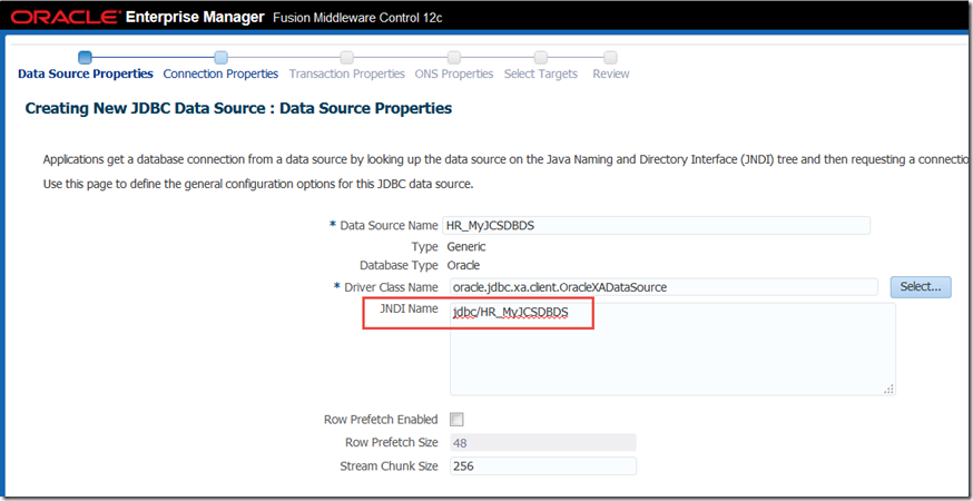 We can create this JDBC Data Source in both WLS Admin Console or EM FMW Control.