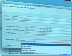 Through this XML Data Control, it will become very simple for developers to leverage fairly complex web services or any other XML producing provider in ADF applications. Additionally the source for this component will be a great example for developers to see how custom data control can be developed.