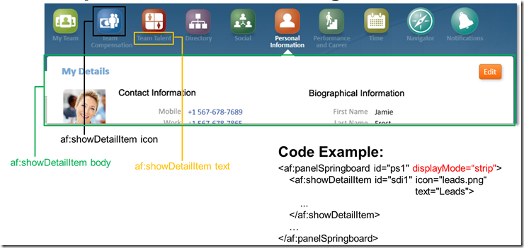 Some examples of creating nice UI implementations using ADF Faces – using components such as Spring Board, Panel Drawer, PanelTabbed: