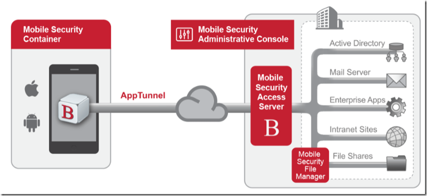 The App Tunnel – the secure connection between the mobile app container and the enterprise back end – does not require a VPN connection.