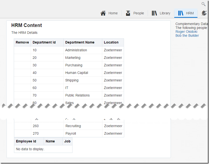 he application developed in that article shows a table with Departments – read from the HR database schema. A nice next step it seems is to show a list of employees as well – and only the employees that work in the currently selected department in the departments table