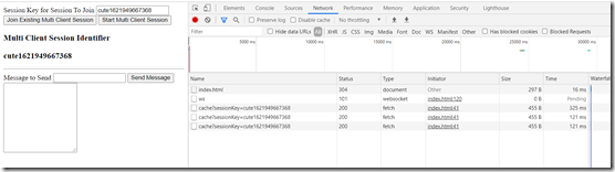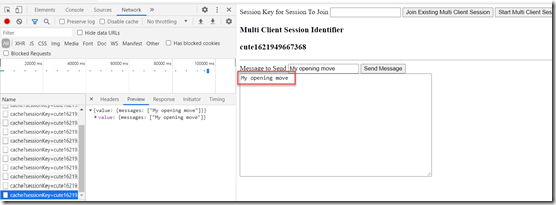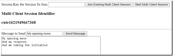 5. Client 1 – enter message that is added to the multi client session context