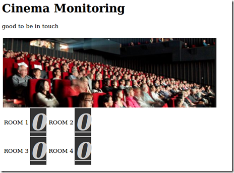 We will create a Stream Explorer application that exposes a REST interface to which we will publish JSON messages (in this example using SoapUI as the client from which to generate the test events). These messages report on groups of people entering or leaving a specific room in a movie theater. The exploration we create will aggregate the information from the messages – providing us with a constant insight in the total number of people in each room. This information is subsequently pushed to the REST service exposed by a Java EE application that routes that information across the web socket to the HTML5 client. The next figure illustrates the application architecture: