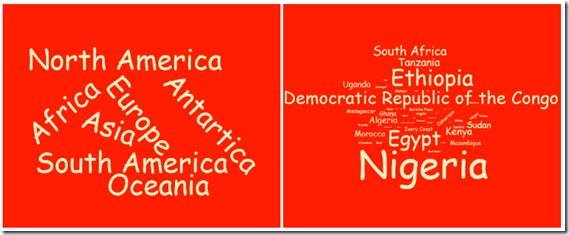 Try out the Continents & Countries Tag Clouds sample page tagcloud.html.