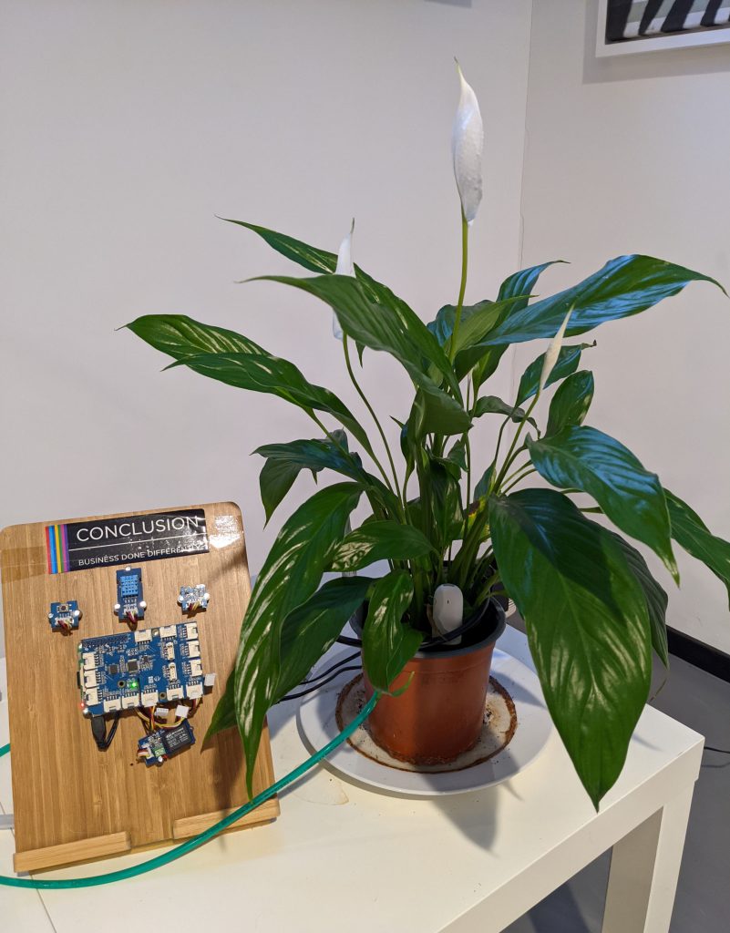 The systems contain several sensors and actuators to achieve the desired physical functionality. This includes the Bluetooth Xiaomi plant monitor, Grove plant care kit, GrovePi+ and I2C Hub.