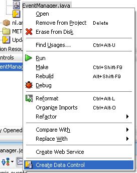 - create an ADF DataControl for class EventManager