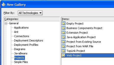 - create a Web project; add ADF Faces and Data Visualization tag libraries