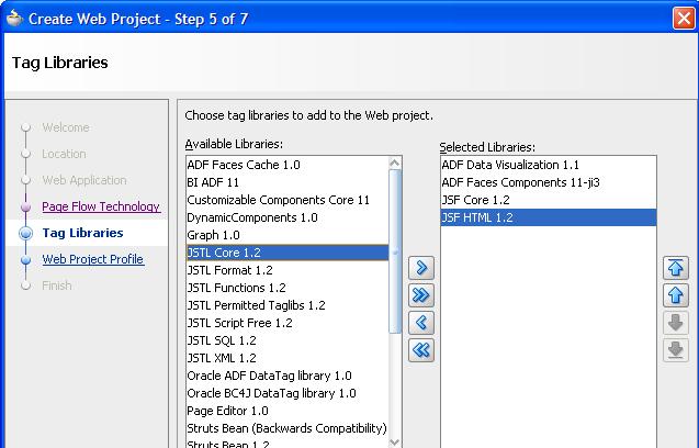1. Create a Web project; add ADF Faces and Data Visualization tag libraries