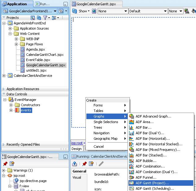 At this point, we can start the Web part of the application, the ADF Faces application that leverages this Data Control and indirectly Google Calendar. Note that the Web Application needs to know nothing about Google Calendar.