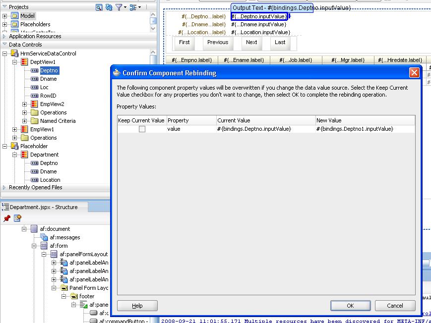 – rebinding ADF components – replacing binding to a Placeholder Data Control with binding to an actual Data Control.