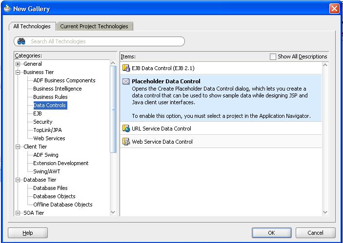 – from the New Gallery, Under Business Tier, node Data Controls, select Placeholder Data Control