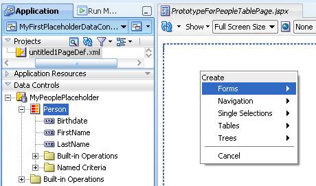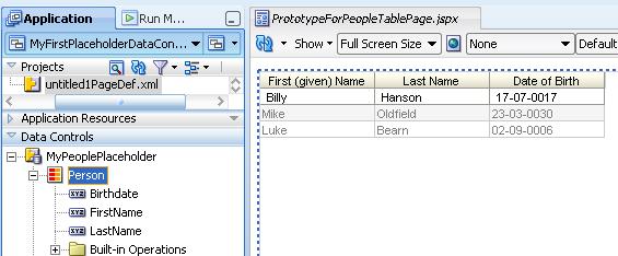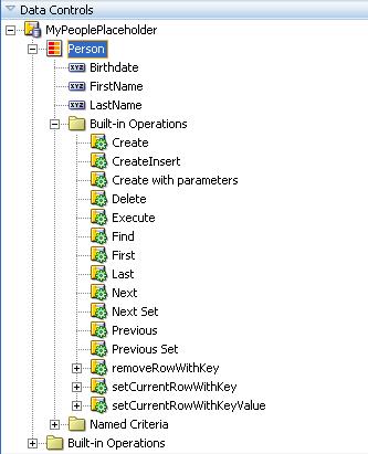 Now you are ready to use the placeholder data control in your pages. Create a new JSF page or open an existing one. Drag and drop the Person node under the MyPeoplePlaceholder to the JSF page:
