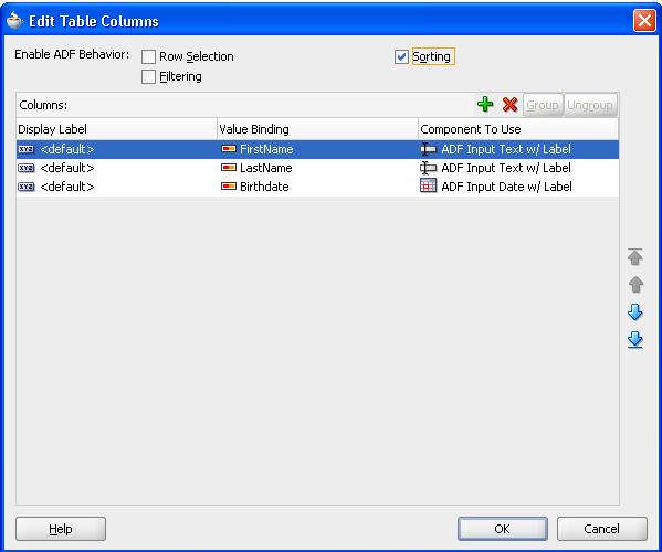 Select ADF Read Only Table. Edit the Table Columns in the aptly named popup: