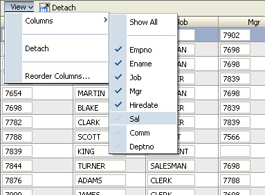 Note the partialTriggers attribute for the table – the string DeptCollectionPanel: was added since the master table is to be wrapped in a naming container – panelCollection – called DeptCollectionPanel.