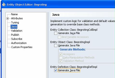 All we have to do is generate a subclass of EntityDefImpl – from the Entity Object wizard – and override a single method, with a single line of code: