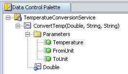 The Output Text item that will display the result of calling this ConvertTemperature service is added to the page, bound to the appropriate attribute in the Page Definition file: