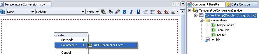 Now create a new JSF page. Drag and drop the Operation from the Data Control Palette, as an ADF Parameter Form: