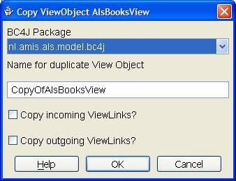 This ViewObject Copy Addin can copy a ViewObject, with a new given name and in the same or a different package. The user can indicate whether ViewLinks that refer to the ViewObject being copied should also be copied. An outgoing viewlink is a viewlink that has the ViewObject being copied as source (master in Foreign Key terminology). An incoming viewlink is a viewlink with the ViewObect being copied as destination (child in FK terms).
