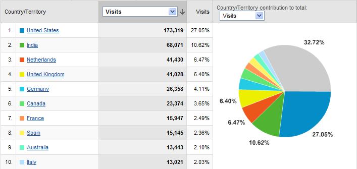 Google Analytics disects the visitors and visits to our website. It is more strict in counting distinct visits and page views than our own WordPress statistics – but probably paints a fairer picture. It is interesting to see where our visitors come from: