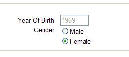 - AJAX-style disabling of Year of Birth when Gender set to Female