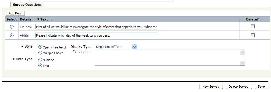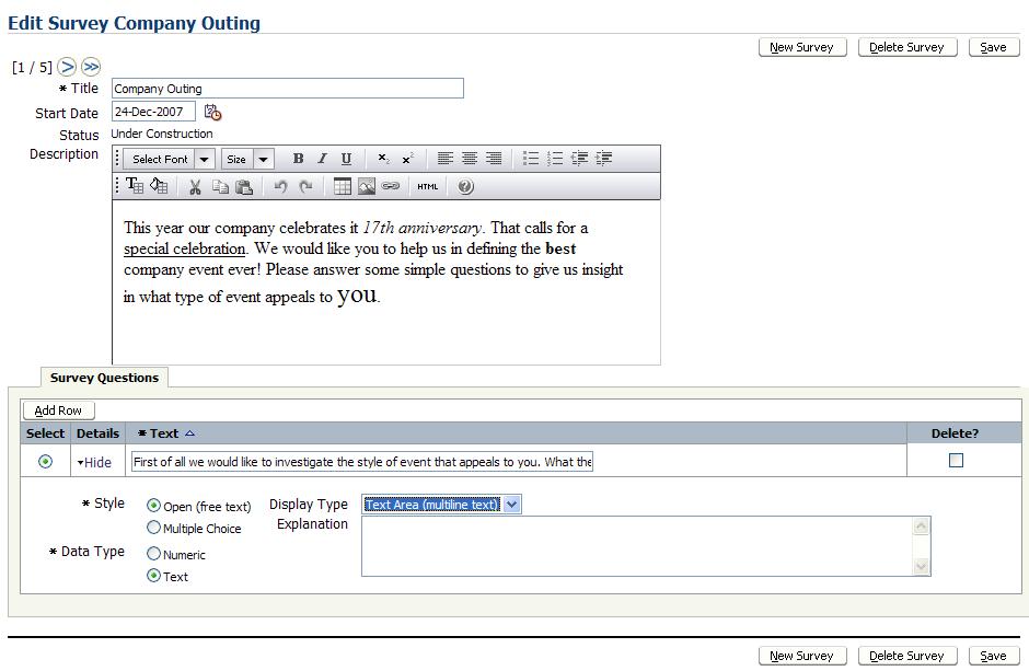 I wanted to make use of the Rich HTML Editor for defining the description of the Survey: