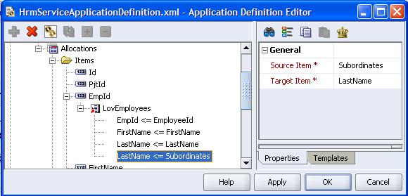 In the JHeadstart Application Definition editor, I add a new return item for the Subordinates source attribute. It is does not matter which target attribute I link it to, as it is not really mapped to a target attribute but instead results in new (target) records: