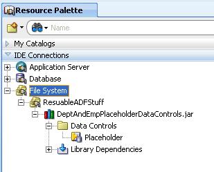 Let’s turn our attention to the right side of the screen for a moment. The Resource Palette. I need to create a new File System connection, as the ADF Libraries are located somewhere on the file system.