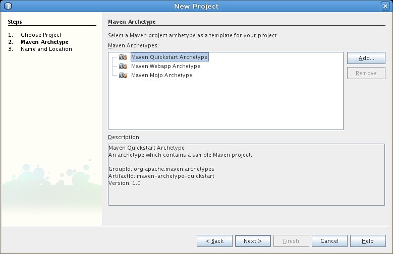 In the next frame, select the “Maven Quickstart Archetype” archetype and click the Next button.