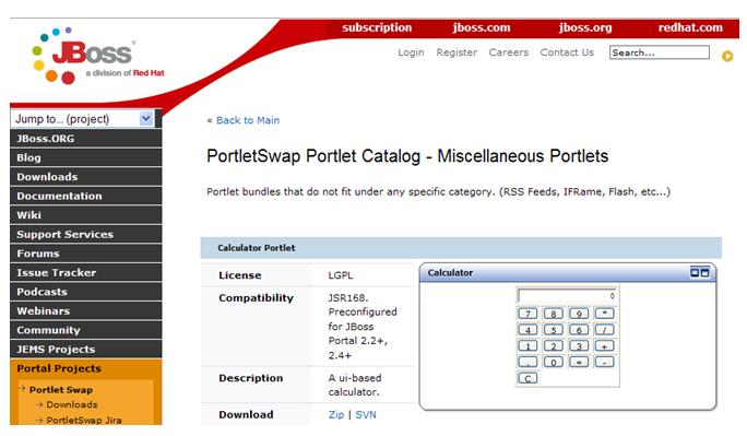 The Calculator Portlet is available from the PortletSwap Portlet Catalog at http://labs.jboss.com/portal/portletswap/portlets_misc.html . It can be downloaded in a zip-file, that contains various war’s and configuration files for the JBoss Portal. However, the Portlet is JSR-168 compliant and as such can be deployed to the WebCenter Portlet Container. Supposedly.