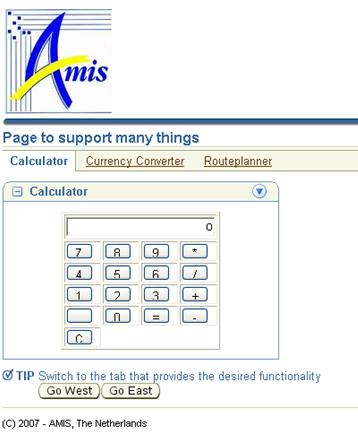 6. Run the page. The ADF Faces page is displayed and lo and behold: it has the Portlet in it! So without any programming on my part – though I had to do quite a bit of configuring – I have embedded cool Calculator functionality in my Web Application.