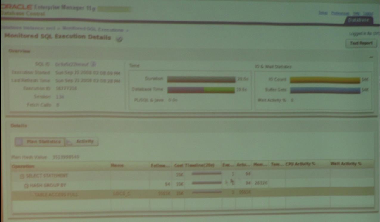 To find it: in Database Control,click on performance tab, click on SQL Monitoring. Graphically monitor historic and current SQL statements. It is already part of Grid Control. Note: this feature is part of standard edition.