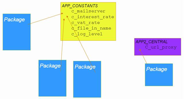 So what we need is a mechanism to have otherwise hard-coded values injected into our PL/SQL program units. A frequently used approach is a central package with hard-coded constants in its specification. This certainly allows for central management of values and takes them out of the components. However, the components still have a dependency on this central package and in order to promote reuse, it is far from ideal to have this extra package, especially if components from various sources use different “central” packages for management of constants. Furthermore, changing the central package may not be as simple as it sounds, due to the many dependencies on that package.
