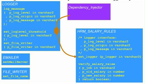 PL/SQL does not have the concept of abstract methods. So what can we do to enforce that the hook-methods in the companion package are implemented? One thing the developers of the reusable component can do, is deliver the component with a companion package that has invalid implementations of the hook-procedures.