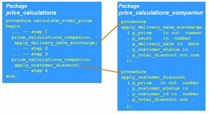 Example: the reusable component is the package price_calculations. This package provides us with a series of very complex order price calculation services.