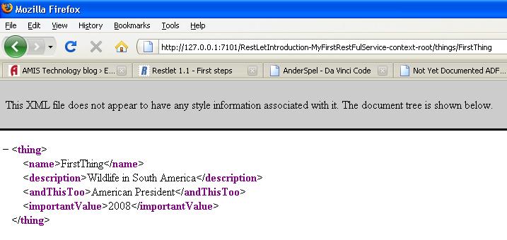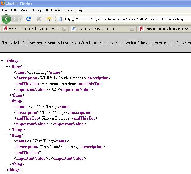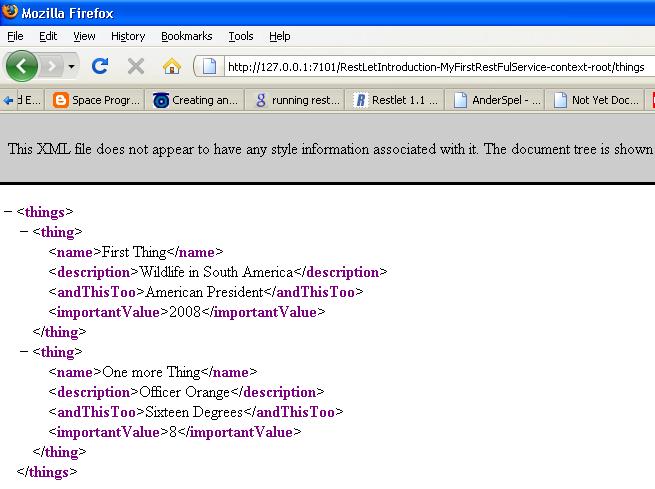 Now when we change the URL by replacing untitled1.jsp with things. Now we see the typical REST(ful) style URL: the name of the resource that is requested is contained in the URL. In fact, apart from host, port and application context root, the url only contains the name of the resource.