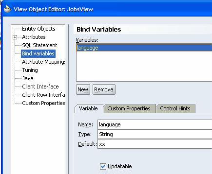 Now let’s create a ViewObject that makes use of the generic :language bind variable: