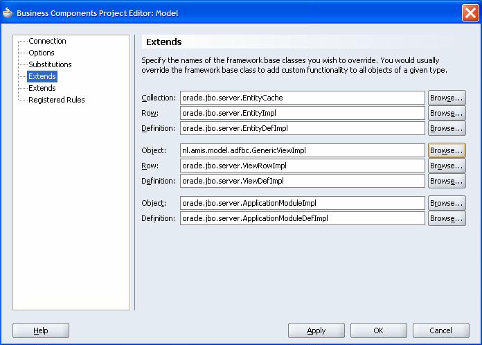Then we configure this class to be the generic superclass for all ViewObjects in our ADF BC project: