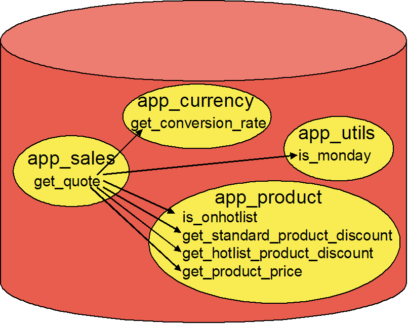 See getSalesQuotePackages.txtfor the implementation of the PL/SQL packages: app_utils, and app_product.