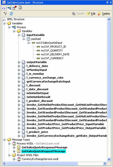 You can download a zip-file with the entire Oracle BPEL Designer (JDeveloper 10.1.2) Workspace here:GetSalesQuote.zip.