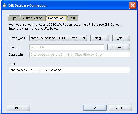 Note that I had to create (in JDeveloper 10.1.3 that is) a new Library (I called it Oracle Lite) with the SOA_HOME\bpel\lib\olite40.jar file in its CLASSPATH in order to get the connection running properly. Perhaps due to lack of knowledge of Oracle Lite I have done something far less simple than is possible here.