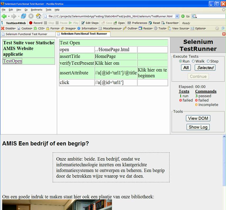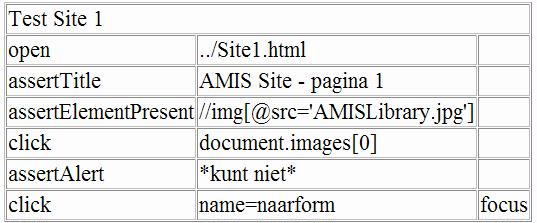 - assertTitle: check of the title for this page is equal to AMIS Site – pagina 1