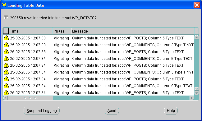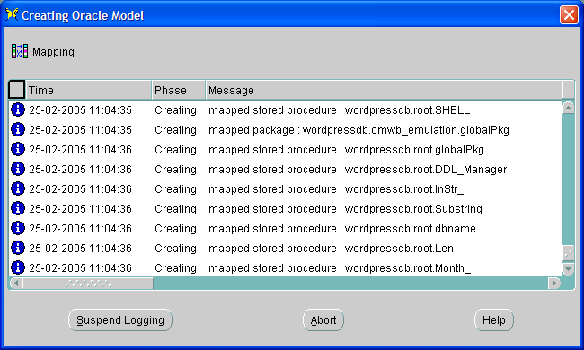 Using the Oracle Migration Workbench was an unexpected pleasure. It was easy to install, easy to use and it delivered the goods. In under two hours, I had installed all software, captured the source design, created the target database objects and migrated all data, some 50Mb worth of WebLog statistics. We recently used the OMWB also for an Access to Oracle migration (see post Oracle Warehouse Builder 10gR2 (beta), a first impression), and there too our findings were positive. It is clear that Oracle invests in tools that provide very easy migration from 3rd party databases to Oracle. Needless to say Oracle is not in such a hurry to provide tools for the reverse operation.