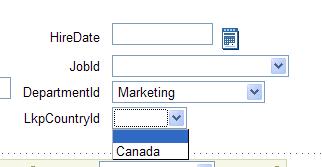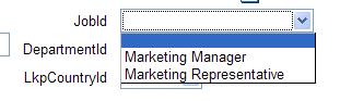 If we select a Department – for example Marketing – the JobId and LkpCountryId lists are immediately updated – restricted as a consequence of that primary choice: