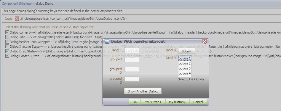 Another extremely useful aspect of the 11g Component Demo is its extensive demonstration of Skinning. For every component, the demo shows which Component Selectors are available for customizing the look and feel of the component.